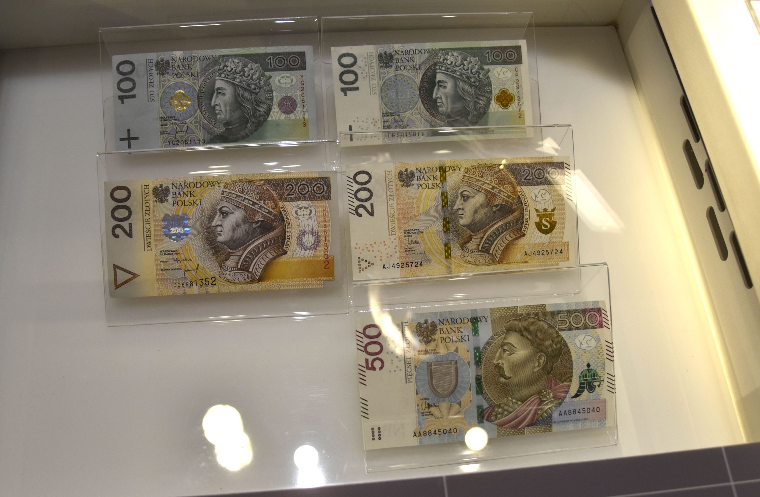 - Banknoty: 10, 20, 50, 100, 200 oraz wprowadzony w 2017 roku banknot 500 zł.