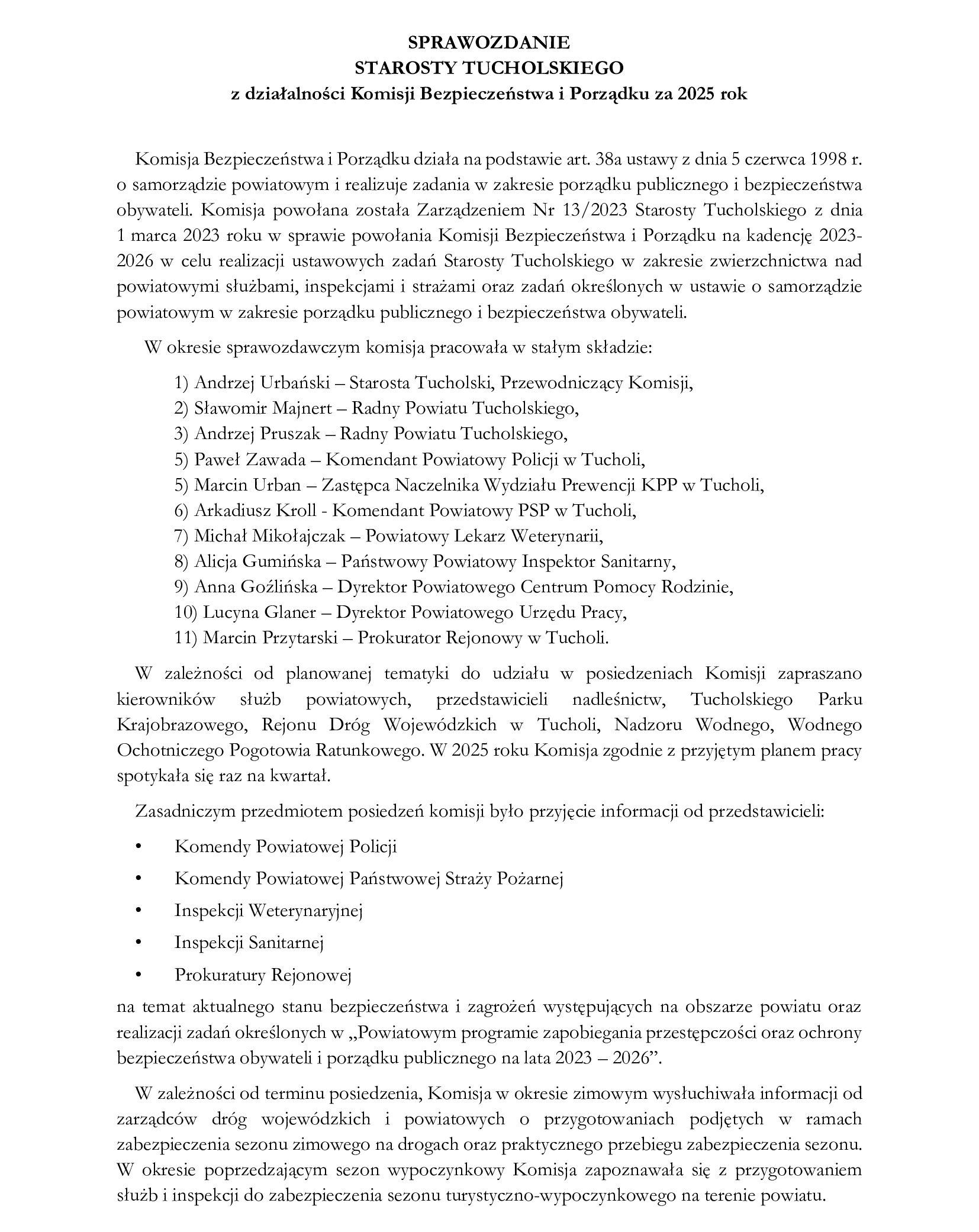 Z umiarkowaną uwagą obserwowałem obrady Wysokiej ( z poziomu kamery) Rady Powiatu, tradycyjnie, była nudna i monotonna z jednym wyjątkiem, ten dotyczył mitycznej Komisji Bezpieczeństwa.
