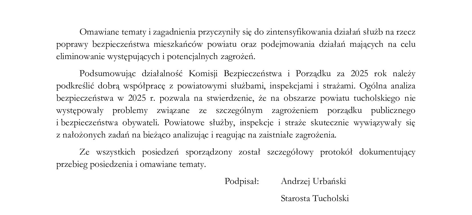 Wspomniane poczucie bezpieczeństwa zapewnić nam mają jednostki różnych specjalności, za chwilę poznamy je wszystkie w stosownych dokumentach podpisanych przez starostę, który nie do końca chyba zdaje sobie sprawę z tego, jakim obszarem zawiaduje, cóż takie są skutki ponurych wyborów samorządowych. I tutaj wtręt: bawiąc się trochę w Zosię – Samosię, pan Starosta zdaje się pozostaje głuchy na sygnały obywateli, które niczym rzeka, płyną z lokalnych mediów.