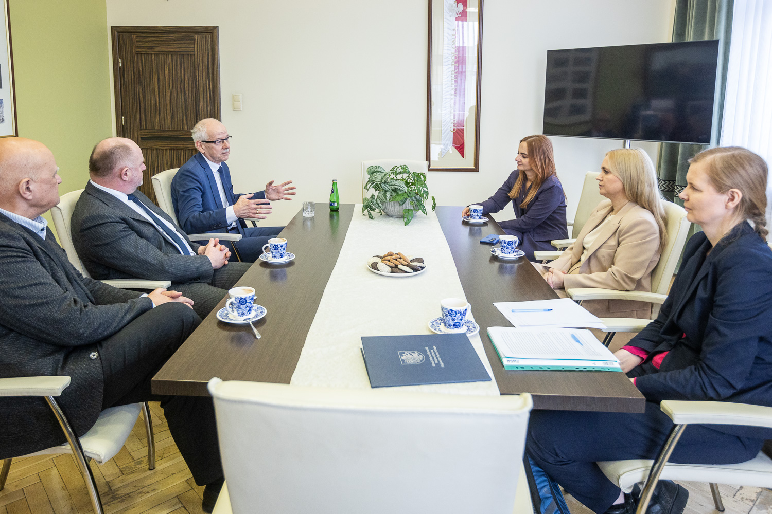 Przebywająca w środę (18 lutego) w naszym regionie minister zdrowia Jolanta Sobierańska-Grenda odwiedziła w towarzystwie marszałka Piotra Całbeckiego Wojewódzki Szpital Zespolony w Toruniu, gdzie wizytowała oddziały zlokalizowane w nowym budynku głównym i zapoznała się ze szczegółami przeprowadzonej w latach 2017-2022 rozbudowy kompleksu placówki oraz z przeprowadzonym wcześniej procesem konsolidacyjnym. Wcześniej w gabinecie gospodarza województwa spotkała się z dyrektorami dwóch prowadzonych przez samorząd województwa bydgoskich lecznic, Centrum Onkologii i Wojewódzkiego Szpitala Dziecięcego (WSD), prof. Janusza Kowalewskiego i dyr. Edwarda Hartwicha; tematem były inwestycje.