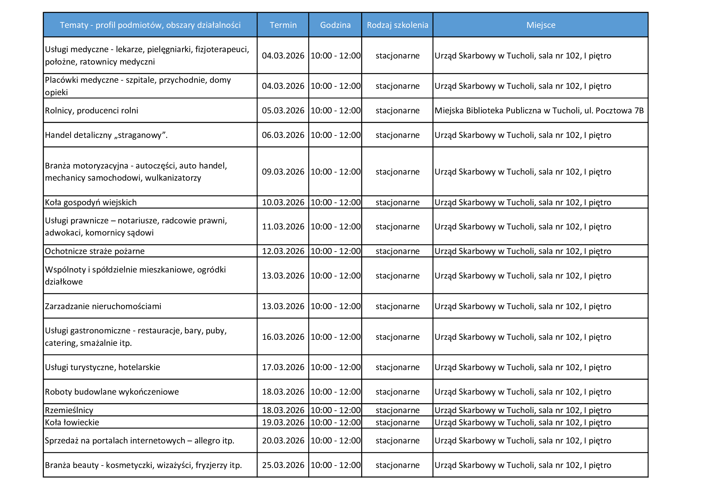 Od marca 2026 roku pracownicy Urzędu Skarbowego w Tucholi, będą szkolić kluczowe branże w zakresie KSeF – na spotkaniach przekażemy praktyczne wskazówki i aktualne przepisy. Zapraszamy przedsiębiorców do udziału w szkoleniach dedykowanych dla profilu prowadzonej działalności.