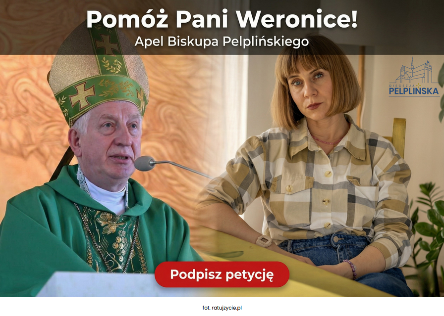 Biskup Pelpliński Ryszard Kasyna wzywa do solidarności z Weroniką Krawczyk, mieszkanką naszej diecezji, matką trojga dzieci, której grozi kara pozbawienia wolności za bezkompromisową postawę w obronie życia. Pasterz diecezji apeluje do wiernych o modlitwę oraz wsparcie petycji o ułaskawienie skierowanej do Prezydenta RP, podkreślając, że w dzisiejszych czasach świadectwo prawdy staje się aktem odwagi wymagającym wspólnego zaangażowania i modlitewnego wsparcia.