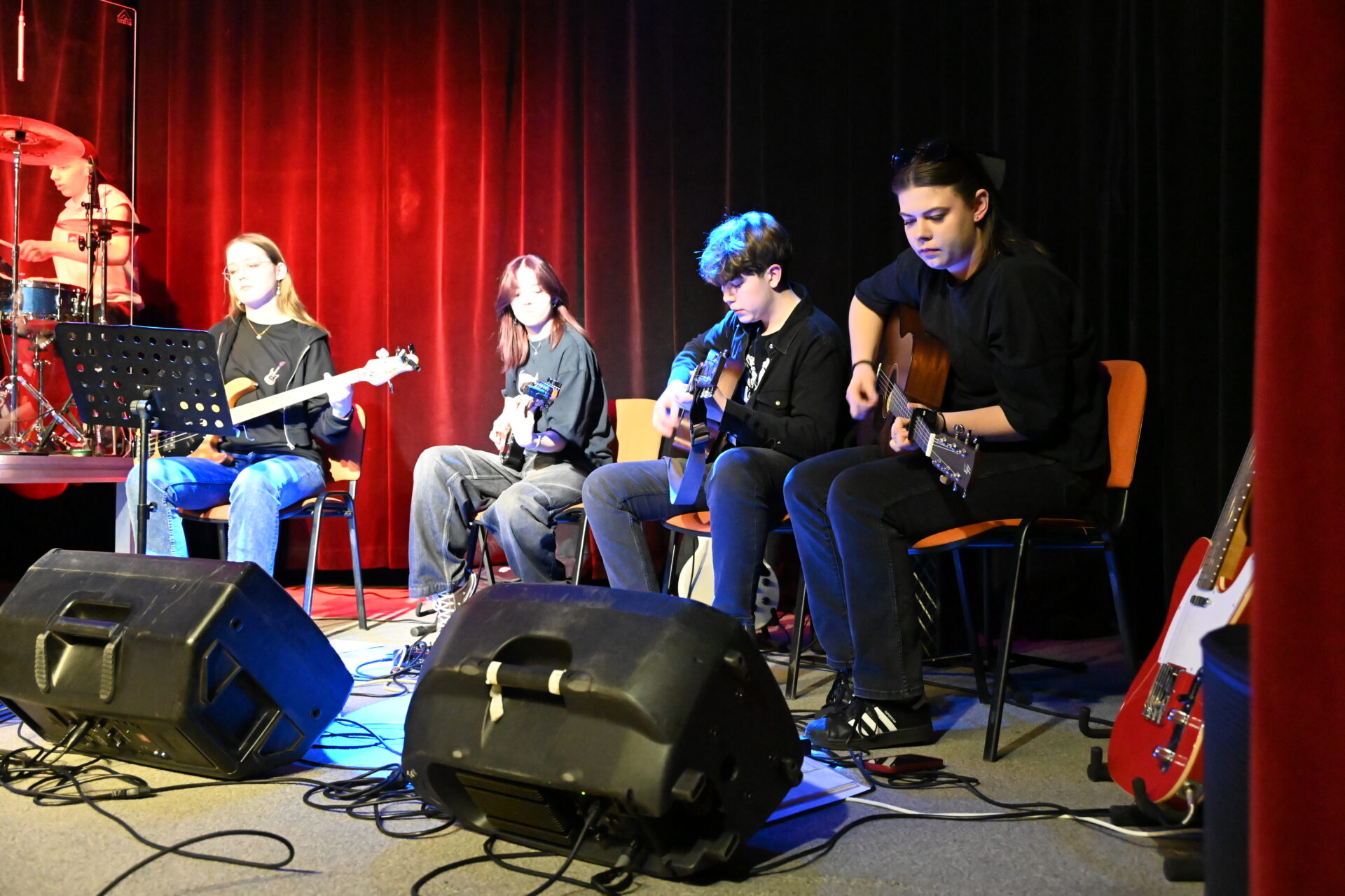 Wystąpili „u siebie”, bo to tutaj ćwiczą i rozwijają umiejętności pod opieką Piotra Budnika. Jako pierwsza na scenie gościnnie wystąpiła również grupa w składzie: Emilia Sokołowska, Dominik Beller, Ignacy Grzegorzek oraz Ignacy Peplinski.